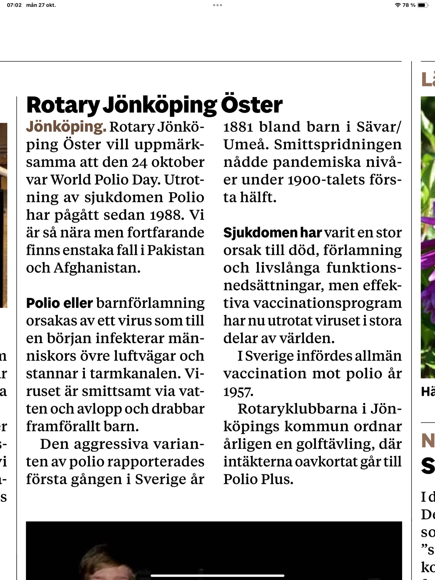 VÄLKOMMEN TILL JÖNKÖPING ÖSTER ROTARYKLUBB