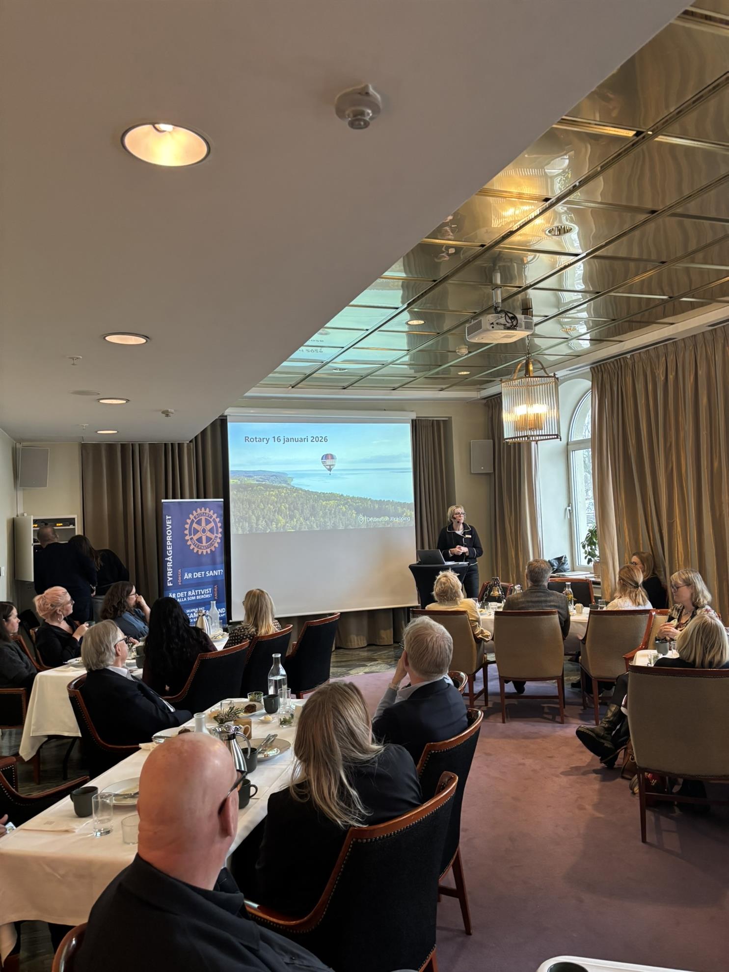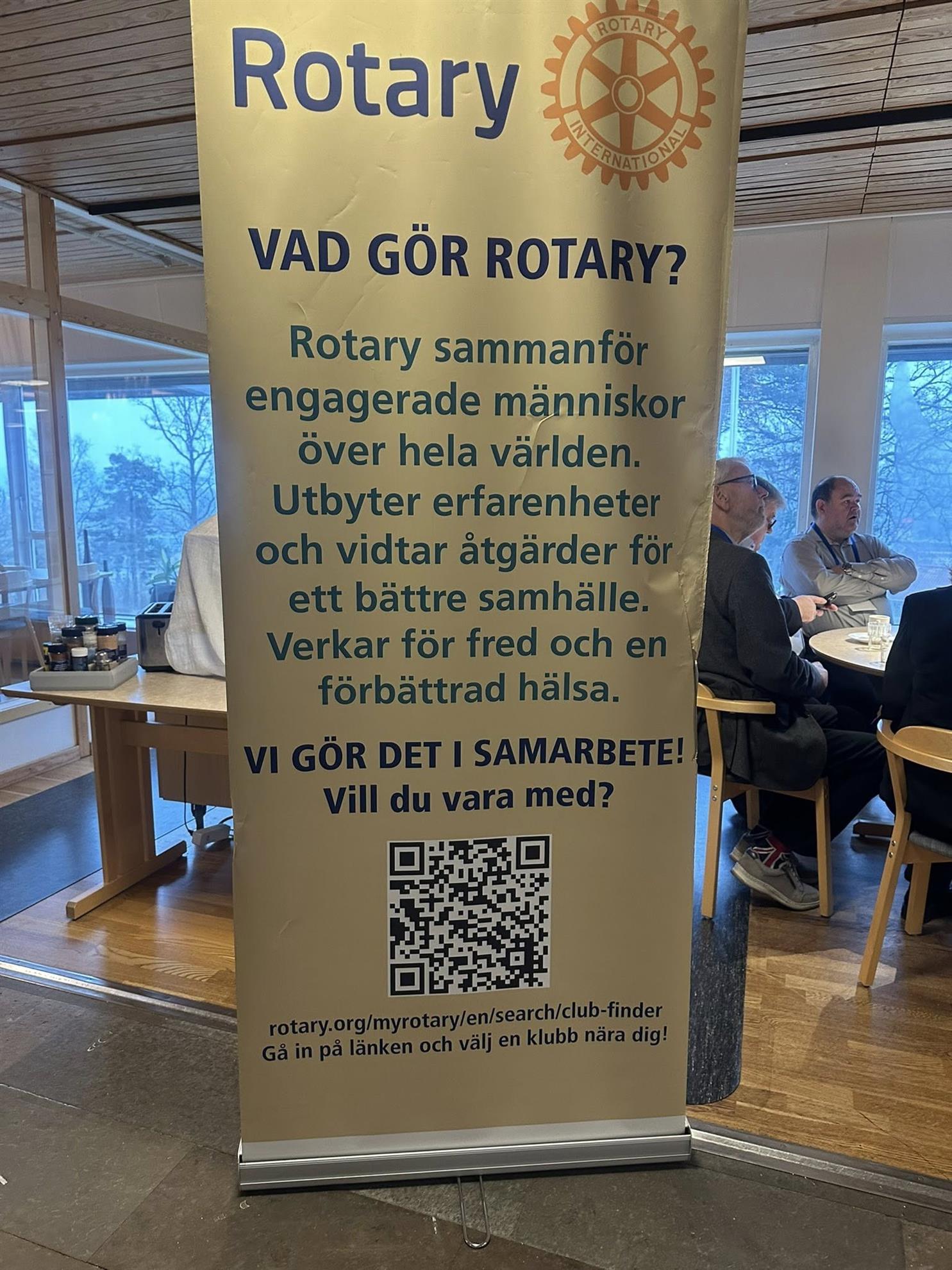 | Lotta Preijde – Ordförande i kommittén för ungdomsutbyte i Distrikt 2365. Besökte klubben och höll ett intressant föredrag om Rotarys ungdomsutbyte. Som en ideell organisation möjliggör Rotary varje år för 8 000 till 10 000 ungdomar världen över att samla internationella erfarenheter som utbytesstudenter. Stiftelsen Rotarys Ungdomsutbyte i Sverige inspirerar unga människor att agera som förebilder för fred och hållbar utveckling i sina lokala samhällen och över hela världen – långt efter att deras utbyte utomlands är slut. |