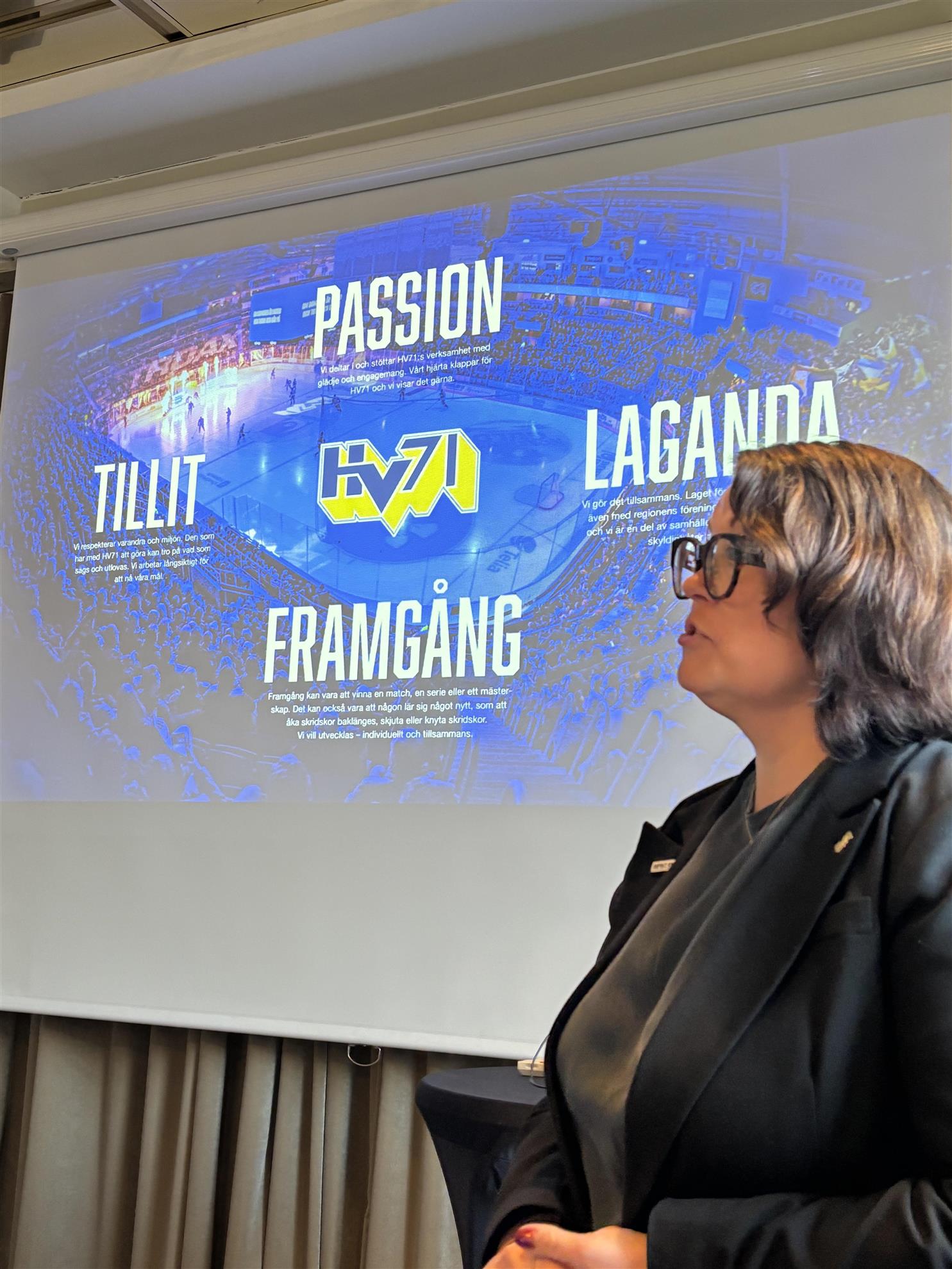 Många tog vara på tillfället att lyssna till Anna Lena Isaksson HV71s ordförande under lunchen den 28/11.